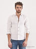 Модная рубашка из гладкой хлопковой ткани. Модель приталенного силуэта. Стояче-отложной ворот. Застежка на планку с пуговицами. Длинные рукава с манжетами. Отлично будет сочетаться с разными по фасону и фактуре вещами.