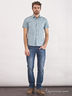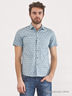 Модная рубашка из гладкой хлопковой ткани с оригинальным принтом. Стояче-отложной ворот. Застежка на планку с пуговицами. Короткие прямые рукава. Отлично будет сочетаться с разными по фасону и фактуре вещами.