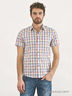 Яркая рубашка из хлопковой ткани с клетчатым узором. Модель прямого силуэта. Стояче-отложной ворот. Застежка на планку с пуговицами. Короткие прямые рукава. Отличный вариант на каждый день.
