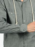Рубашка с капюшоном из шелковистого меланжевого материала. По краю капюшона завязки. Застегивается на планку на пуговицах. На полочке два накладных кармана. Манжеты на пуговицах.