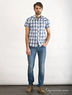 Потрясающая рубашка из хлопковой ткани с клетчатым узором. Стояче-отложной ворот. Застежка на планку с пуговицами. Короткие рукава. Полочки и спинка дополнены кокеткой.