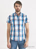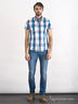 Стильная рубашка из хлопковой ткани. Стояче-отложной ворот. Застежка на планку с пуговицами. Коротки рукава. На полочках два накладных кармана с клапанами. Отличный вариант на каждый день.