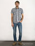 Стильная рубашка из хлопковой ткани. Стояче-отложной ворот. Застежка на планку с пуговицами. Коротки рукава. На полочках два накладных кармана с клапанами. Прекрасно будет сочетать с разными по фасону и фактуре вещами.
