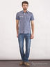Великолепная рубашка из хлопковой ткани. Стояче-отложной ворот. Застежка на планку с пуговицами. Короткие рукава. На полочке прорезной карман с застежкой на пат с пуговицу и накладной объемный карман с клапаном.