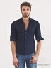 Модная рубашка из гладкой хлопковой ткани. Модель приталенного силуэта. Стояче-отложной ворот. Застежка на планку с пуговицами. Длинные рукава с манжетами. Отлично будет сочетаться с разными по фасону и фактуре вещами.