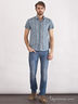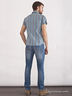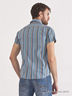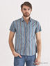 Великолепная мужская рубашка из льняной ткани в вертикальную полоску. Стояче-отложной ворот. Застежка на планку с пуговицами. Короткие прямые рукава. Отличный вариант на каждый день.