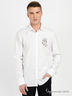 Стильная рубашка с длинными рукавами и отложным воротником стойкой. Прямой силуэт. Изделие выполнено из приятного на ощупь хб материала. Рукава с манжетами на пуговице. Застежка на пуговицы. На полочке оригинальный принт. Прекрасно сочетается как с джинсами, так и с брюками!