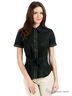 Детали: отложной ворот-стойка, укороченный рукав, застежка на пуговицы, пришиты ленты-завязки, планка застежки и манжеты украшены бисером
