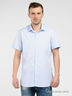 Стильная рубашка прямого кроя. Выполнена из приятного на ощупь хб материала. Отложной воротник-стойка. Короткие рукава. Спереди застежка на пуговицы.