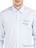 Модная рубашка прямого кроя. Выполнена из приятного на ощупь хб материала. Отложной воротник-стойка. Длинные рукава с манжетами на пуговицах. Спереди застежка на пуговицы. Полочка украшена оригинальным принтом.