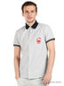 Рубашка с короткими рукавами и отложным воротником. Модель прямого кроя дополнена спереди застежкой на пуговицы. Отличный вариант на каждый день.
