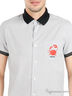 Рубашка с короткими рукавами и отложным воротником. Модель прямого кроя дополнена спереди застежкой на пуговицы. Отличный вариант на каждый день.