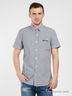 Повседневная рубашка прямого кроя. Выполнена из приятного на ощупь хб материала. Отложной воротник-стойка. Короткие рукава. Спереди застежка на пуговицы. Полочка украшена оригинальным принтом.