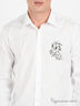Стильная рубашка с длинными рукавами и отложным воротником стойкой. Прямой силуэт. Изделие выполнено из приятного на ощупь хб материала. Рукава с манжетами на пуговице. Застежка на пуговицы. На полочке оригинальный принт. Прекрасно сочетается как с джинсами, так и с брюками!
