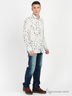 Модная рубашка с длинными рукавами и отложным воротником стойкой. Прямой силуэт. Выполнена из приятного на ощупь хб материала. Рукава с манжетами на пуговице. Застежка на пуговицы. Изделие украшено оригинальным узором. Прекрасно сочетается как с джинсами, так и с брюками!