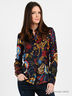 Яркая рубашка с длинными рукавами и отложным воротником стойкой. Приталенный силуэт. Рукава с манжетами на пуговице. Застегивается на пуговицы. Оригинальный яркий узор. Прекрасно сочетается с брюками, джинсами и юбкой.