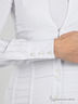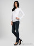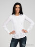 Женская рубашка оригинального покроя. Отложной воротник на стойке. V-Образный вырез прекрасно подчеркивает грудь. Длинные рукава с манжетами на пуговицах. Застегивается на планку с пуговицами. Покрой подчеркивает талию.