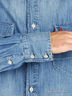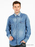 Детали: отложной ворот-стойка, застежка на пуговицы на полочке, манжеты на пуговицах, два нагрудных кармашка, эффект потертости