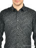 Стильная мужская рубашка из легкого хлопка с отложным воротником и застежкой на пуговицы. Изделие декорировано оригинальным принтом. Низ изделия скруглен.