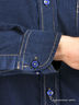 Стильная мужская рубашка из тонкого вельвета с отложным воротником и застежкой на пуговицы. Изделие декорировано контрастной прострочкой. На полочке расположен накладной карман. Низ изделия скруглен.