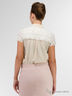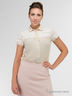 Рубашка с короткими рукавами и отложным воротником. Модель приталенного кроя дополнена застежкой на пуговицы спереди, а так же вставками из ажурного материала . Отличный вариант на каждый день.