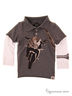 Трикотажная рубашка-поло с длинными рукавами для мальчика. Модель сочетает в себе легкость и ощущение комфорта, имеет оригинальный принт. Рукава изделия оформлены контрастными декоративными заплатками. Повседневный вариант.