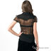 Стильная шелковая блузка с воротником-стойкой и короткими рукавами-фонариками. Блузка украшена рюшами вдоль планки.