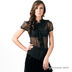 Стильная шелковая блузка с воротником-стойкой и короткими рукавами-фонариками. Блузка украшена рюшами вдоль планки.