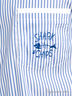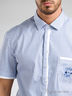 Классическая модель с коротким рукавом застегивается на пуговицы по всей длине. Декоративная вышивка на нагрудном кармане.