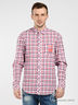 Повседневная рубашка прямого кроя. Выполнена из приятного на ощупь хб материала. Отложной воротник-стойка. Длинные рукава с манжетами на пуговицах. Спереди застежка на пуговицы. На полочке накладной карман с оригинальным принтом.