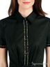 Детали: отложной ворот-стойка, укороченный рукав, застежка на пуговицы, пришиты ленты-завязки, планка застежки и манжеты украшены бисером