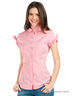 Детали: отложной ворот-стойка, короткий рукав с декоративными завязками, застежка на пуговицы, вытачки