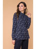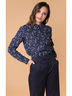 Рубашка прямого силуэта, свободно садится на фигуру. Ткань с принтом - мелкая ласточка. Рукав длинный и дополнен манжетами на пуговицах, воротник классический.