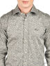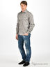 Детали: застежка на пуговицы, отложной воротник; длинный прямой рукав с манжетой, регулирующейся по ширине и застегивающейся на три пуговицы; полочка декорирована вышивкой в виде логотипа бренда; фигурный крой низа изделия; внутренняя часть ворота, верхняя часть спинки и внутренняя часть манжеты дополнены контрастной вставкой.