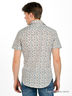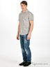 Детали: застежка на пуговицы, отложной воротник, короткий рукав с пристроченной манжетой, полочка декорирована вышивкой в виде логотипа бренда, фигурный крой низа, внутренняя часть ворота и верхняя часть спинки дополнены вставкой в тон изделия.