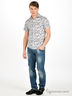 Детали: застежка на пуговицы, отложной воротник, короткий рукав с пристроченной манжетой, полочка декорирована вышивкой в виде логотипа бренда, фигурный крой низа, внутренняя часть ворота и верхняя часть спинки дополнены вставкой в тон изделия.