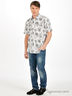 Детали: застежка на пуговицы, отложной воротник, короткий рукав с пристроченной манжетой, полочка декорирована вышивкой в виде логотипа бренда, фигурный крой низа, внутренняя часть ворота и верхняя часть спинки дополнены вставкой в тон изделия.