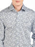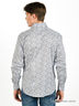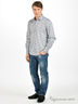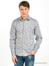 Детали: застежка на пуговицы, отложной воротник; длинный прямой рукав с манжетой, регулирующейся по ширине и застегивающейся на три пуговицы; полочка декорирована вышивкой в виде логотипа бренда; фигурный крой низа изделия; внутренняя часть ворота и планка дополнены контрастной вставкой.