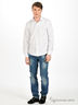 Детали: застежка на пуговицы, отложной воротник; длинный прямой рукав с манжетой, регулирующейся по ширине и застегивающейся на три пуговицы; полочка декорирована вышивкой в виде логотипа бренда; фигурный крой низа изделия; внутренняя часть ворота, и планка дополнены контрастной вставкой.