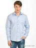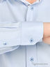 Детали: застежка на пуговицы, отложной воротник; длинный прямой рукав с манжетой, регулирующейся по ширине и застегивающейся на три пуговицы; полочка декорирована вышивкой в виде логотипа бренда; фигурный крой низа изделия; внутренняя часть ворота и планка дополнены контрастной вставкой.