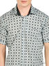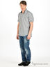Детали: застежка на пуговицы, отложной воротник, короткий рукав с пристроченным подворотом, полочка декорирована вышивкой в виде логотипа бренда, фигурный крой низа изделия, внутренняя часть ворота и верхняя часть спинки дополнены контрастной вставкой.