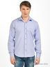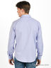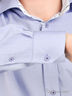 Детали: застежка на пуговицы, отложной воротник; длинный прямой рукав с манжетой, регулирующейся по ширине и застегивающейся на три пуговицы; полочка декорирована вышивкой в виде логотипа бренда; фигурный крой низа изделия; внутренняя часть ворота и планка дополнены контрастной вставкой.