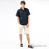 Льняная рубашка классического кроя. Разрезы по бокам. Нагрудный карман. Отложной воротник. Короткие рукава. Застегивается на пуговицы.