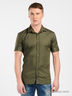 Стильная рубашка из хлопковой ткани с лоском. Отложной ворот, короткий рукав с манжетами, застежка на пуговицы. Отличный вариант для прогулок и встреч.