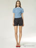Блуза с короткими рукавами и отложным воротником. Модель приталенного кроя подчеркивает достоинства фигуры. Спереди изделие дополнено застежкой на пуговицы. Отличный вариант на каждый день.