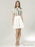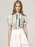 Блуза с короткими рукавами и отложным воротником. Модель приталенного кроя подчеркивает достоинства фигуры. Спереди изделие дополнено застежкой на пуговицы. Отличный вариант на каждый день.