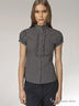 Выглядеть обворожительно и элегантно - это очень просто, если в Вашем гардеробе есть такая рубашка. Модель с короткими рукавами, воротником стойка и застежкой по центру. Приталенный крой подчеркивает фигуру. Планка застежки украшена великолепным жабо.
