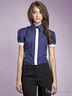 Блуза с короткими рукавами и отложным воротником. Модель приталенного кроя подчеркивает достоинства фигуры. Спереди изделие дополнено застежкой на пуговицы. Отличный вариант на каждый день.