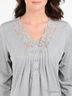 Детали: v-образный вырез, длинные рукава, спереди застегивается на пуговицы, полочка украшена кружевными вставками, по бокам разрезы