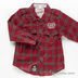 Стильная клетчатая рубашка для мальчика. С накладными карманами на груди, вышитой надписью на спине и фирменным логотипом на полочке. Отложной воротник, плечи декорированы хлястиками на пуговицах.